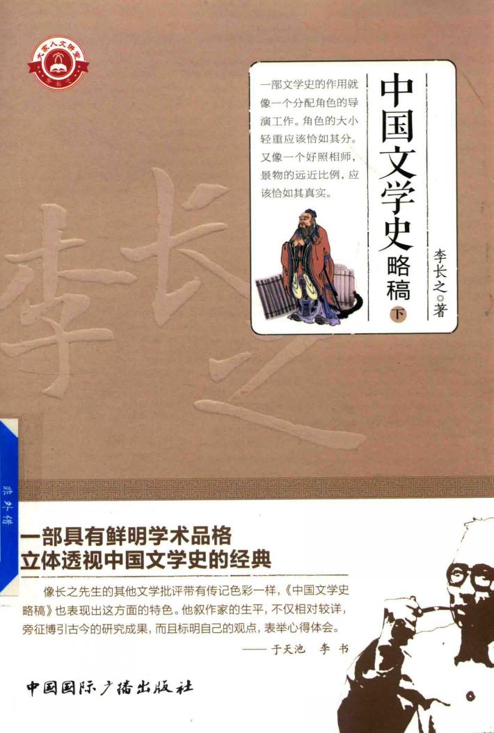 《中国文学史略稿》是李长之先生出版并畅销于20世纪50年代的一部对中国文学史进行探索和研究的高校教材,其立足宏阔的世界文学视域,避免了一些文学史著作“只知中国文学,不知世界文学”的弊端,突出文学演进的脉络和线索,并依此标准权衡详略及轻重显晦,是一部具有鲜明的学术品格、较高的学术价值的文学史经典。